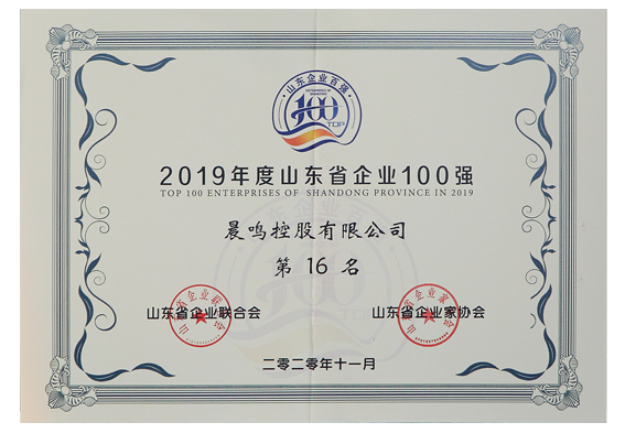 2013/10 山东省企业联合会、山东省企业家协会和山东省工业经济联合会发布了2013山东企业百强榜单,公司位列第16位,较去年排名上升了13位。